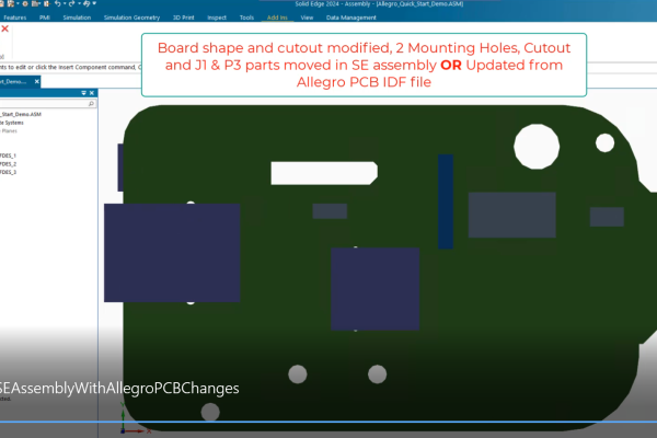This product is a bi-directional IDF translator. It enables collaboration between your electronics and mechanical designers. You can create Solid Edge assemblies from your PCB designs. You can also modify the Solid Edge assembly and send the changes back to the PCB CAD system.